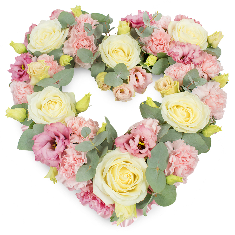 Celebrate love and remembrance with our refined tribute bouquet, expertly arranged with elegant white roses, delicate pink carnations, sophisticated pink lisianthus, and aromatic eucalyptus leaves. Each flower is hand-selected to ensure exceptional freshness and beauty.